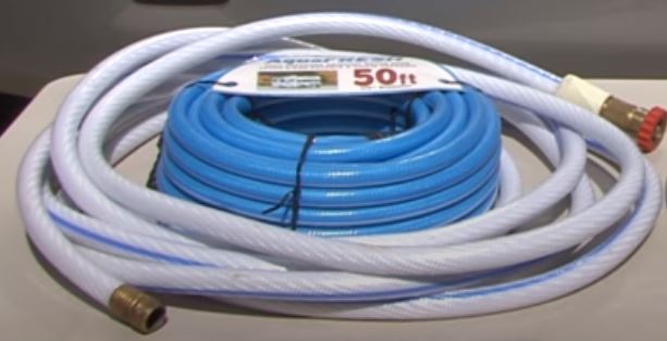 2. It’s a good idea to take a 10-foot and 20-foot RV drinking water hose with you so you can always reach the campground water supply. Note* There are white drinking water hoses, blue drinking water hoses, and blue and white striped drinking water hoses. Verify that the label says drinking water hose.